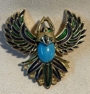 VTG JOMAZ Unsigned Gold Tone Enamel Turquoise Scarab/ Phoenix Brooch Pendant
