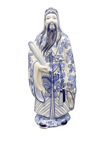 Vtg Chinese Fu Xing Wise Man Sage Blue/White Porcelain Large Figurine 14 In
