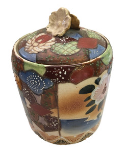 Vintage Asian Tobacco Humidor Ginger Jar Satsuma Barrel Form W/ Lid 1930s