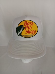 Vintage Bass Pro Shops White SnapBack Dad Trucker Fishing Logo Cap Hat