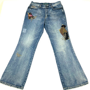 RALPH LAUREN Jeans Embroidered Vintage Pattern Women's Size 12 Loose Fit Baggy