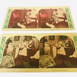 Stereoview Stereosope Color Cards Boys Women Lot 2 Reducing Surplus Bedroom Maid