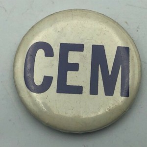 CEM Pinback Button Pin Badge Vintage 1-1/2" Diameter Unsure Mystery Unknown HELP