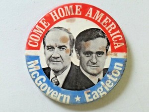 Vtg. Political Pinback Button McGovern / Eagleton Come Home America 3 1/2" 9844