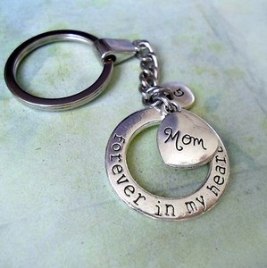 Mom Keychain - Forever in My Heart with Letter Charm * Great Mother Gift