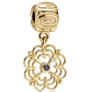 Pandora Retired 14K Gold Dogwood Dangle Clip with Black Diamond - 750812DB