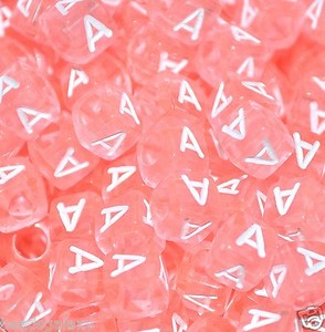 wholesale 1000 pcs translucent 6 mm pink cube with white vowel letter A E I O