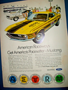 1970 Ford Mustang 428 program car ad -"America's Pacesetter"- worn