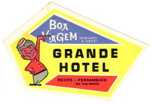 RECIFE BRAZIL GRANDE HOTEL VINTAGE PORTER LUGGAGE LABEL