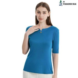 Women's Silk Half-sleeved T-Shirt with Notch Collar