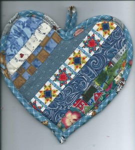NEW blue HEART shape pieced HOTPAD POTHOLDER handmade Valentines LOVE Reversible