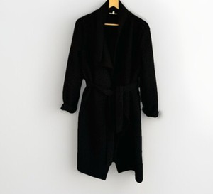 Easel Black Wool Blend Wrap Jacket Size L Coat Belted Pockets Textured Mid Lengt