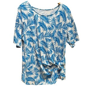 Lands End Top Blue Leaf Floral Print Side Knot Summer Coastal Stretch Size 2X