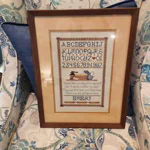 Vintage Cross Stitch Alphabet Sampler Wedfing Farmhouse Completed Needlework