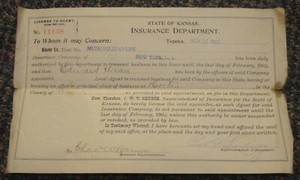 1903 Horton Kansas License To Agent Metropolitan Life Insurance - Edward Weare