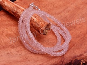 2mm Faceted Rose Quartz Necklace - Rose Quartz Beaded Necklace 925 Silver Lock