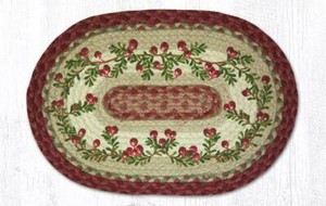 2 Braided Jute Oval Stenciled Placemat/Trivet/Swatch. Earth Rugs. CRANBERRIES.