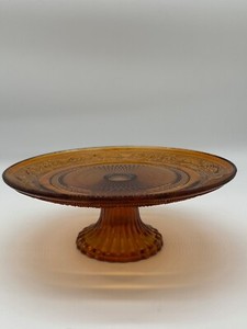 Vintage Amber Glass Mini Pedestal Footed Cake Stand 7.75"