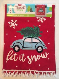 Christma Volkswagen Bug Christmas Tree Table Runner 72” Let It Snow wTassels New