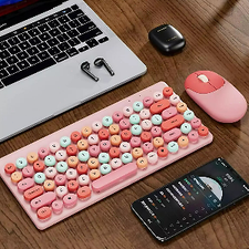 Wireless Keyboard & Mouse Combo, Ergonomic 86-Key Round Keycap, Full-Sized