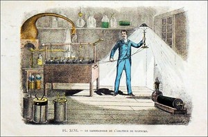 SCIENCES - LABORATOIRE de L'AMATEUR de SCIENCES au 19e siècle - Gravure du 19e s