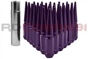 24 PC Ram1500 Powder Coated Purple New 4.5" Spike Lug Nuts 14x1.5 Solid Steel