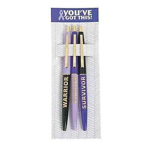 3 Purple Ribbon Ballpoint Pens Warrior Fighter SURVIVOR