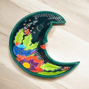 Ganz Bella Casa Crescent Moon Serving Bowl Chips Leave Bird Floral Flowers Party