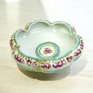 Vintage Scalloped Edge Footed Bowl Floral Flowers Hand Painted Pink Blue Roses
