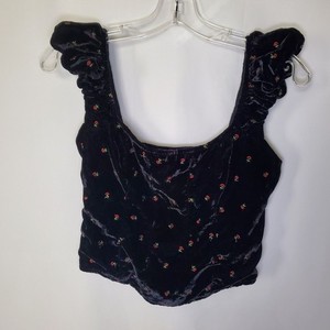 Free People Top Women's Small Velvet Black Floral Corset Boho Romantic Shirt