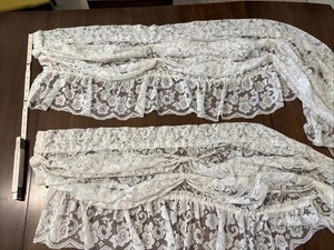 2 VTG Lace Curtain Valances Scallop Ruched Ivory Floral 56”Wx14”L Lot