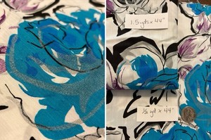 2.75 Yds VTG Semi-Sheer Fabric Blue Floral Poly-Rayon 1970s 2 Pcs Large Roses
