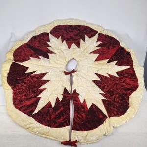 Velvet Patchwork Tree Skirt Snowflake Pattern Deep Red & Cream 46" Round