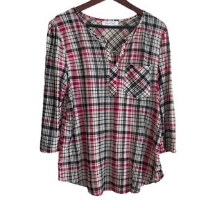 Stonebridge Women Camp Top L Colorful Abstract Plaid Button Up Linen Blend Artsy