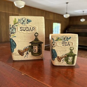 Vintage Napco Ceramic Asian Inspired Sugar & Tea, No lids 2 Canister 5856 5864