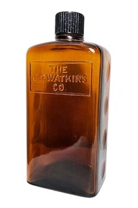 Vtg JR Watkins Glass Medicine Bottle Amber Brown Thumbprint Embossed Rectangular