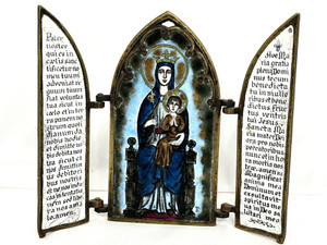Rare Vintage Piechaud Enameled Bronze Religious Triptych Madonna & Child Signed