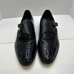 Stacy Adams Kasimir Double Monk Strap Slip-On Black Croc Embossed Loafers 9M