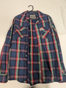 Superdry Casual Shirt Red Blue Cotton Plaid Long Sleeves Button Up Size Medium