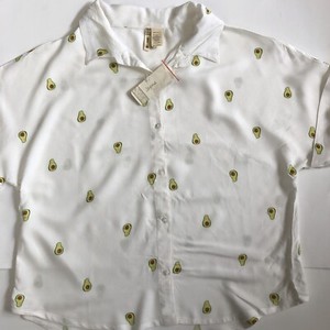 Japna White Green Avocado Novelty Print Blouse Top Size M Button Shirt NWT