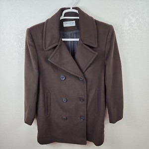 Vintage Forecaster of Boston Brown Wool Blend Double Breasted Navy Pea Coat SZ 8