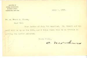 1899 Poughkeepsie NY Lawyer Charles Morschauser Typed Letter Signed New York