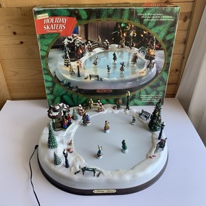 Mr Christmas Holiday Skaters 1890 Animated Musical Victorian Ice Skating Scene
