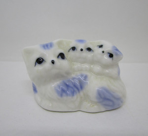 Vintage Porcelain Delft Like Kittens Cats in Basket