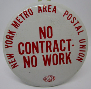 Vintage New York Metro Area Postal Union NO CONTRACT NO WORK Pin Pinback Button