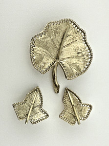 Vintage Brooch Clip Earrings Set BSK Signed GoldPlated Leaves #30