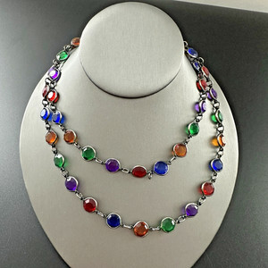 Vintage Multicolor Bezel Necklace Faceted Deep Jewel Tone Links #443