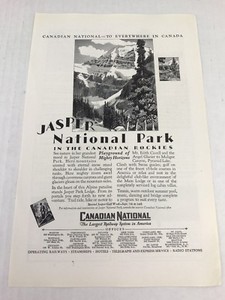 Canadian National Railway Jasper National Park Vtg 1929 Print Ad