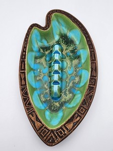 Ashtray 15 Rest Treasure Craft 9x5 Glazed Pottery Palm Leaf Turquoise Green Rare RM 103.270 bids5d 15h 59m