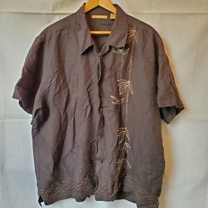 Havana Linen Blend Shirt Mens Sz 2XL Black Gold Bamboo Short Sleeve Button Front